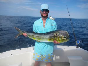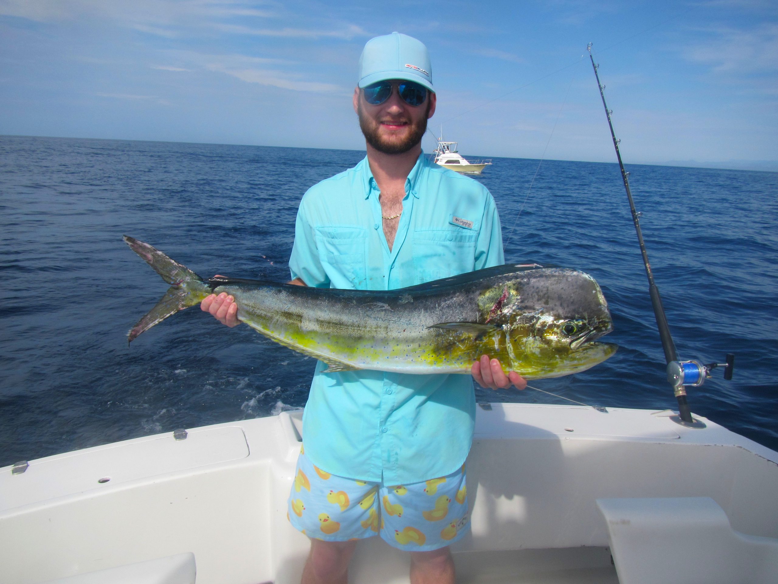 Fishing on the EL BUDSTER. The TRACIE WENTZ´S party, CAUGHT ONE 30 LB. DORADO. The fish was caught 14 to 16 miles from the coast of Cabo San Lucas. The water temperature was 72-75 degrees.