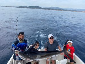 Fishing on the EL BUDSTER PRIDE. The SEAN GROBERMAN´S party, CAUGHT AND RELEASED TWO 120-130 LB. STRIPED MARLIN. The fish was caught 15 miles from the coast of Cabo San Lucas. The water temperature was 72-75 degrees.