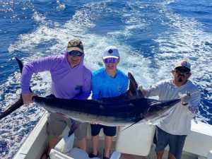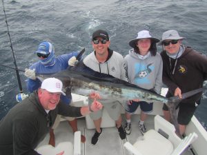 Fishing on the EL BUDSTER. The ROSS BERCIER´S party, CAUGHT AND RELEASED ONE 120 LB. STRIPED MARLIN. They also caught ONE 25-30 LB. DORADO. The fish was caught 14 to 16 miles from the coast of Cabo San Lucas. The water temperature was 69-72 degrees.