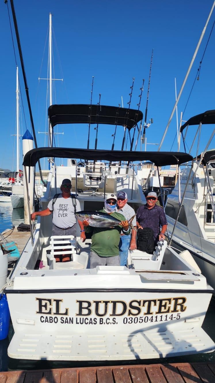 Fishing on the EL BUDSTER. The TODD CARPENTER´S party, CAUGHT AND RELEASED ONE 120 LB. STRIPED MARLIN. They also CAUGHT FOUR 30-40 LB. YELLOWFIN TUNA, ONE 45 LB. WAHOO and ONE 15 LB. DORADO. The fish was caught 16 to 18 miles from the coast of Cabo San Lucas. The water temperature was 76-78 degrees.