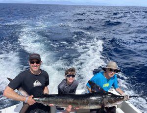 Fishing on the EL BUDSTER PRIDE. The Colin Crosby´s Family, caught and released THREE STRIPED MARLIN between 130LB. and 140LB. They also caught ONE MAKO SHARK and ONE YELLOWFIN TUNA. The fish was caught on the 1150 spot. The water temperature was 69-72degrees.