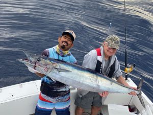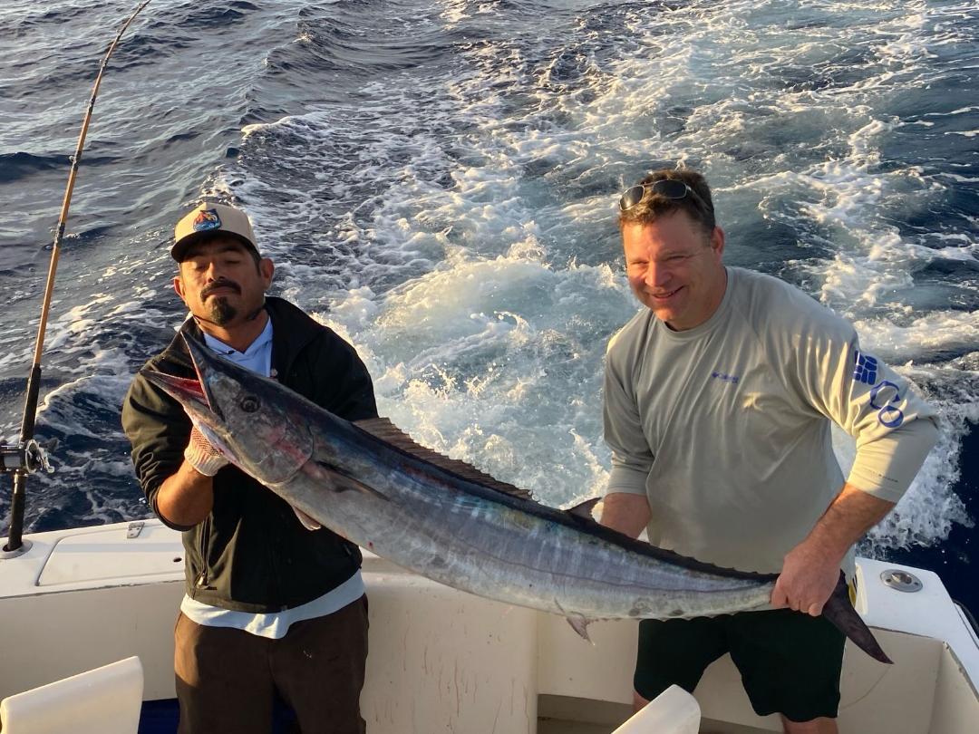 Fishing on the EL BUDSTER PRIDE. The MIKE VETTER´S party, CAUGHT ONE 45 LB. WAHOO and TWENTY-FIVE SIERRA MACKEREL. The fish was caught 14 to 16 miles from the coast of Cabo San Lucas. The water temperature was 74-78 degrees.
