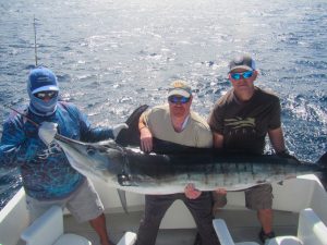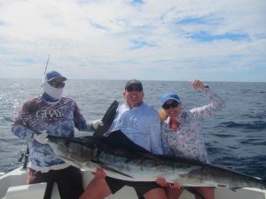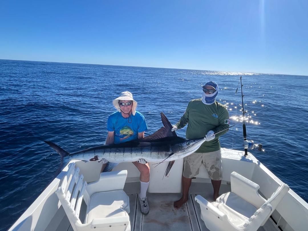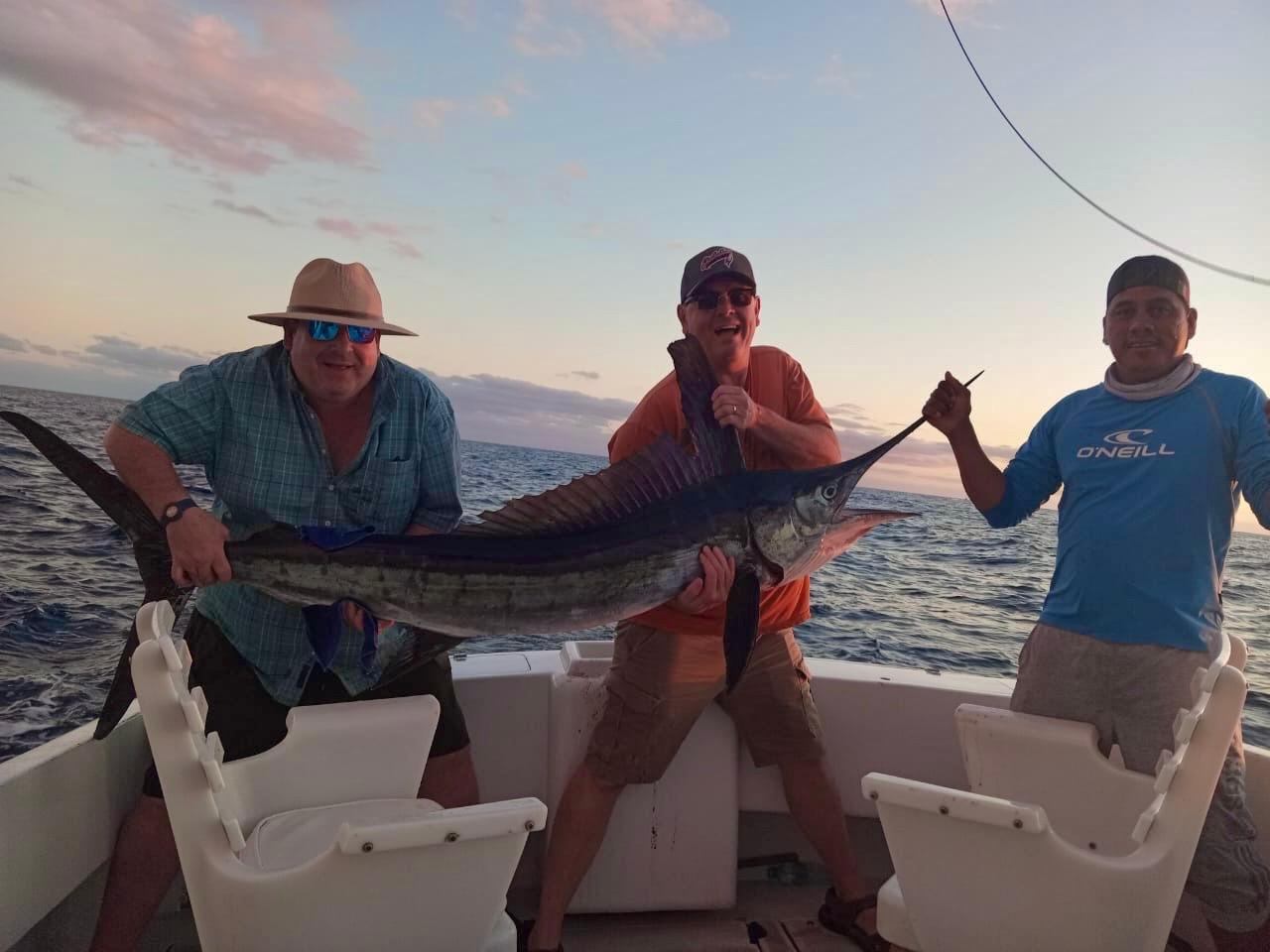 Fishing on the EL BUDSTER. The BRIAN SMITH party, CAUGHT AND RELEASED ONE 100 LB. STRIPED MARLIN. The fish was caught 15 miles from the coast of Cabo San Lucas. The water temperature was 74-76 degrees.