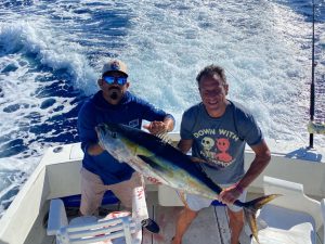 Fishing on the EL BUDSTER PRIDE. The JEAN OLTROGGE, CAUGHT THREE 35-40 LB. YELLOWFIN TUNA. The fish was caught 14 miles from the coast of Cabo San Lucas. The water temperature was 73-78 degrees.