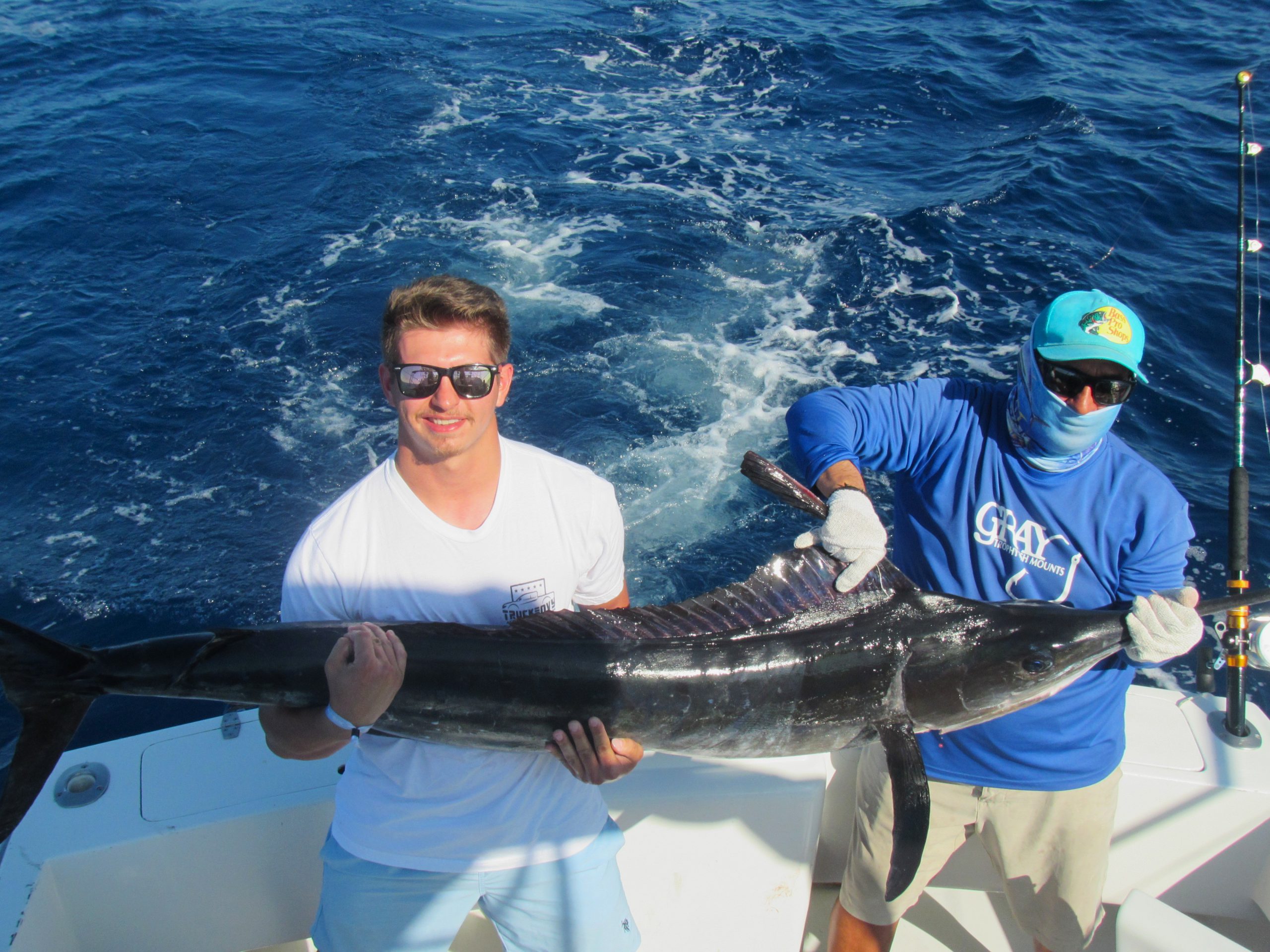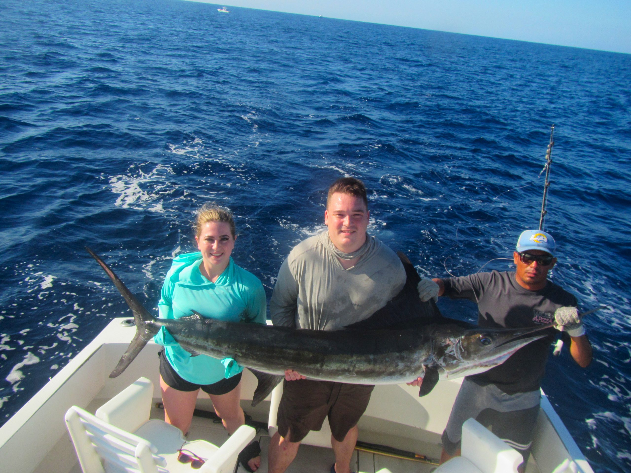 Fishing on the EL BUDSTER. The TIM DARBY´S party, CAUGHT AND RELEASED ONE 90 LB. STRIPED MARLIN. They also CAUGHT TWO 15-20 LB. YELLOWFIN TUNA. The fish was caught 16 miles from the coast of Cabo San Lucas. The water temperature was 77-79 degrees.