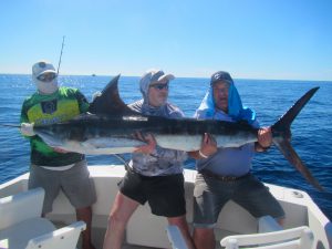 Fishing on the EL BUDSTER. The AARON HOCK´S party, CAUGHT AND RELEASED ONE 120 LB. STRIPED MARLIN. They also CAUGHT SIX 20-25 LB. DORADO. The fish was caught 12 to 14 miles from the coast of Cabo San Lucas. The water temperature was 74-76 degrees.